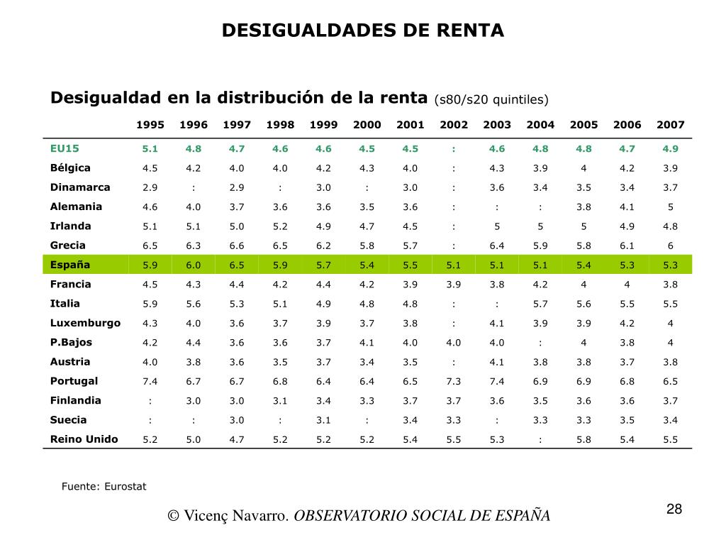 DESIGUALDADES DE RENTA Fuente: Eurostat © Vicenç Navarro. OBSERVATORIO SOCIAL DE ESPAÑA