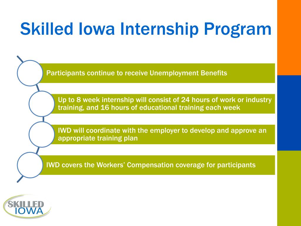Find out more information and download an employer supporter form at www.skillediowa.org or contact: Lori Adams Teresa Wahlert lori.adams@iwd.iowa.govteresa.wahlert@iwd.iowa.gov 515-281-7538 515-281-5365
