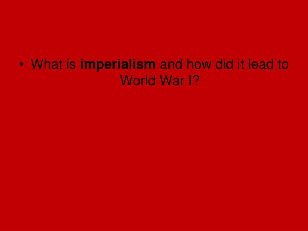 Imperialism is when one country controls another. Imperialism led to increased rivalry and competition between European nations. Conflict over colonies brought European countries to the brink of war.