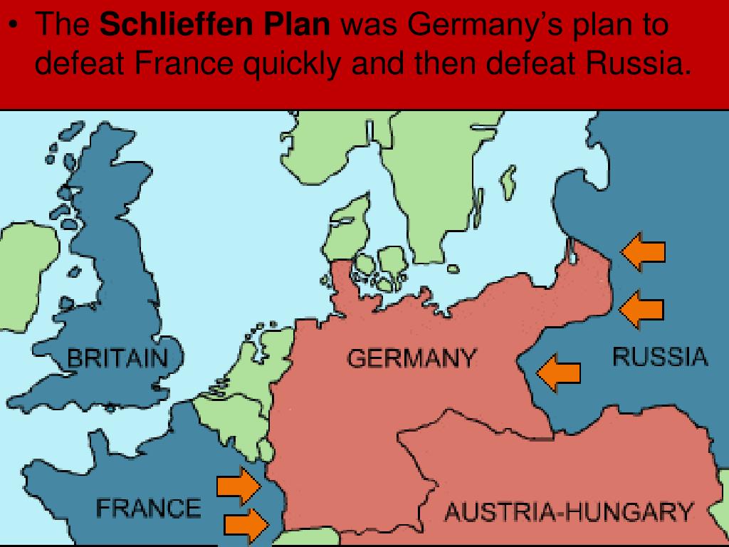 The Schlieffen Plan was Germany’s plan to defeat France quickly and then defeat Russia.
