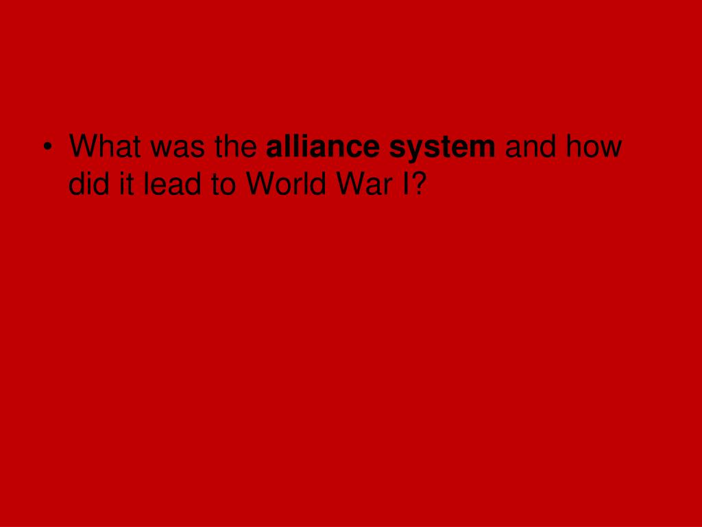 The alliance system was groups of alliances designed to keep peace in Europe; however, it turned a conflict between two nations into a world war.