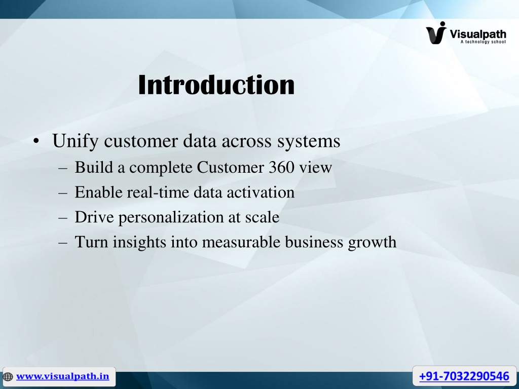 Introduction • Unify customer data across systems • Build a complete Customer 360 view • Enable real-time data activation • Drive personalization at scale • Turn insights into measurable business growth