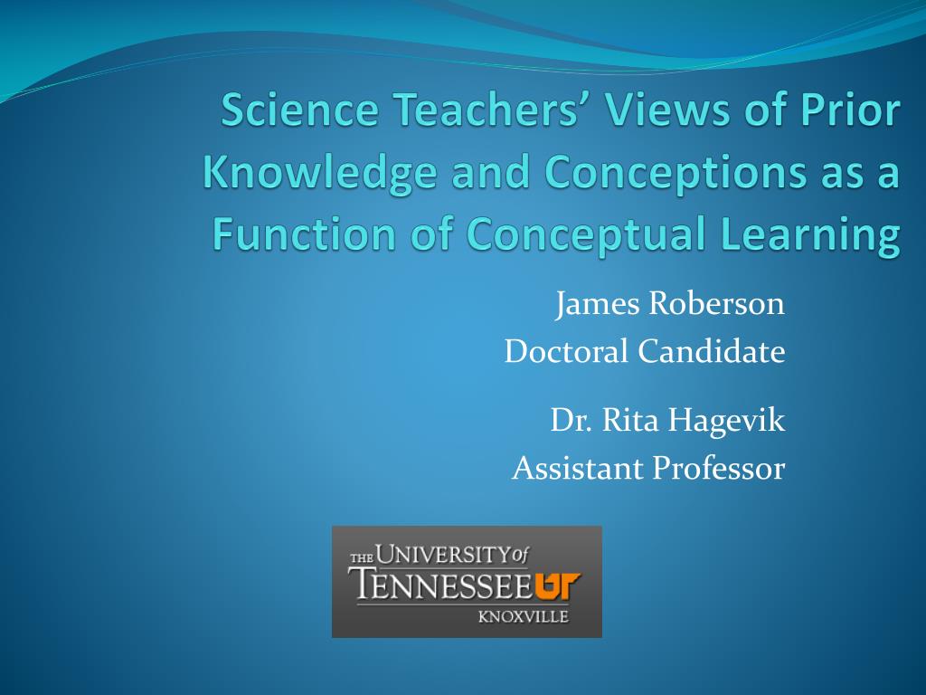 Science Teachers’ Views of Prior Knowledge and Conceptions as a Function of Conceptual Learning James Roberson Doctoral Candidate Dr. Rita Hagevik Assistant Professor