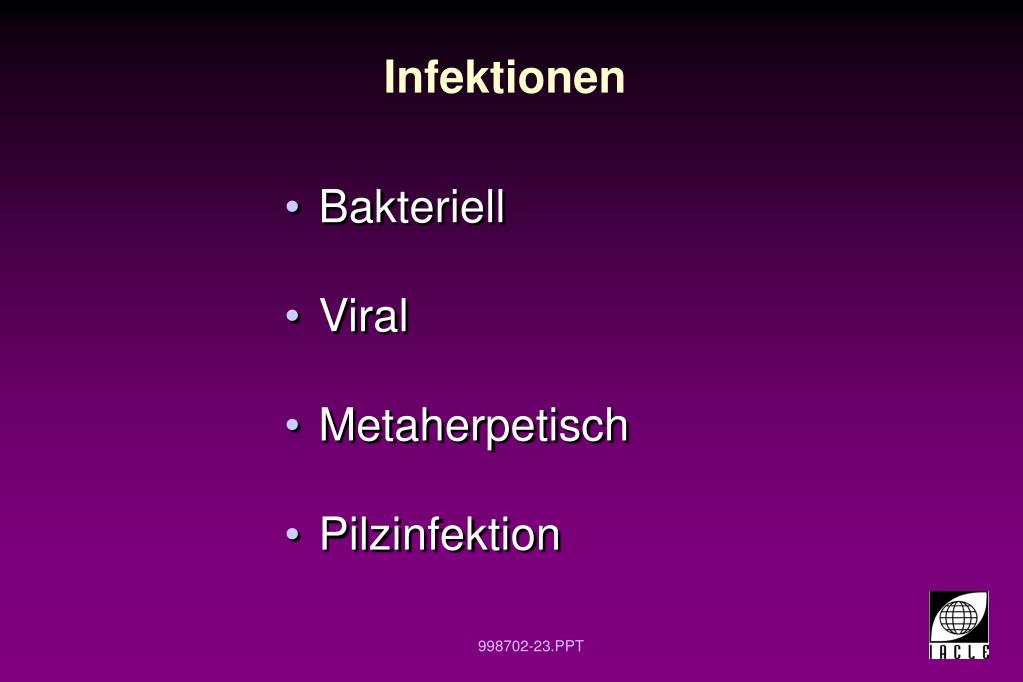 Infektionen • Bakteriell • Viral • Metaherpetisch • Pilzinfektion