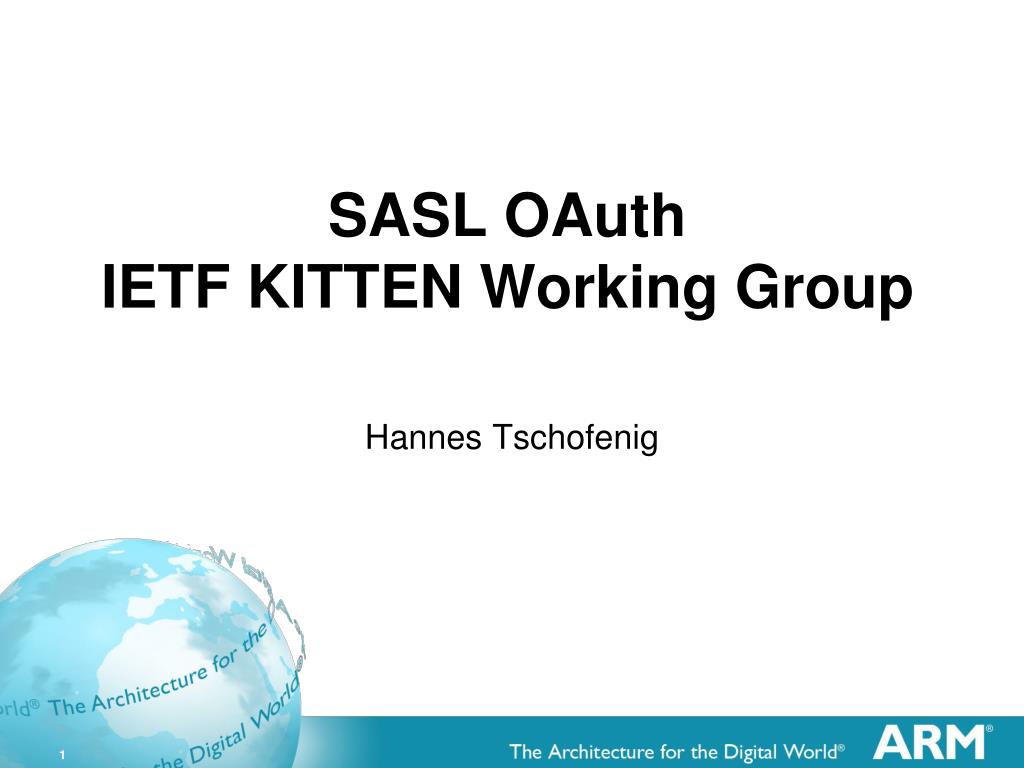SASL OAuth IETF KITTEN Working Group. Hannes Tschofenig. What is SASL?. Simple Authentication and Security Layer (SASL) described in RFC 4422. SASL is an authentication framework. It is a middleware supported in applications.