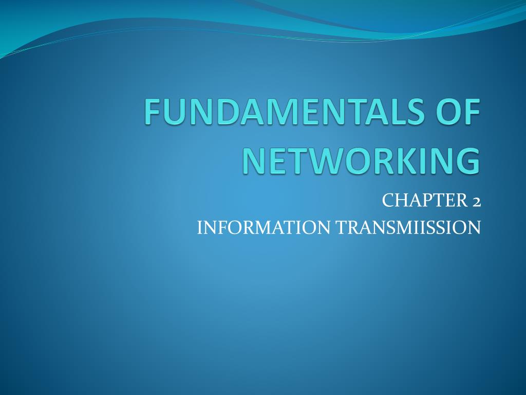 FUNDAMENTALS OF NETWORKING CHAPTER 2 INFORMATION TRANSMIISSION