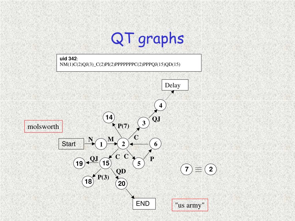 Preliminary Conclusions • We have developed a rich set of codes describing syntactic part of QT’s • These can be used to develop a graph-based description • Correlations between the codes are meaningful/interesting • They form part of the analysis for our current experimental study.