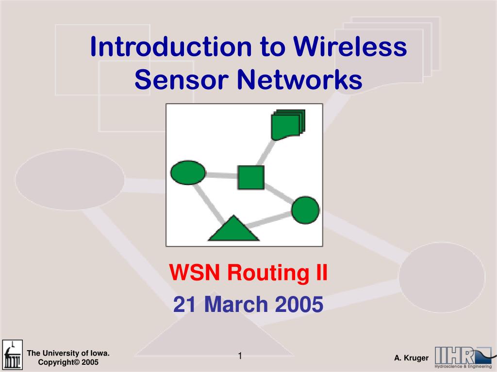 Introduction to Wireless Sensor Networks WSN Routing II 21 March 2005
