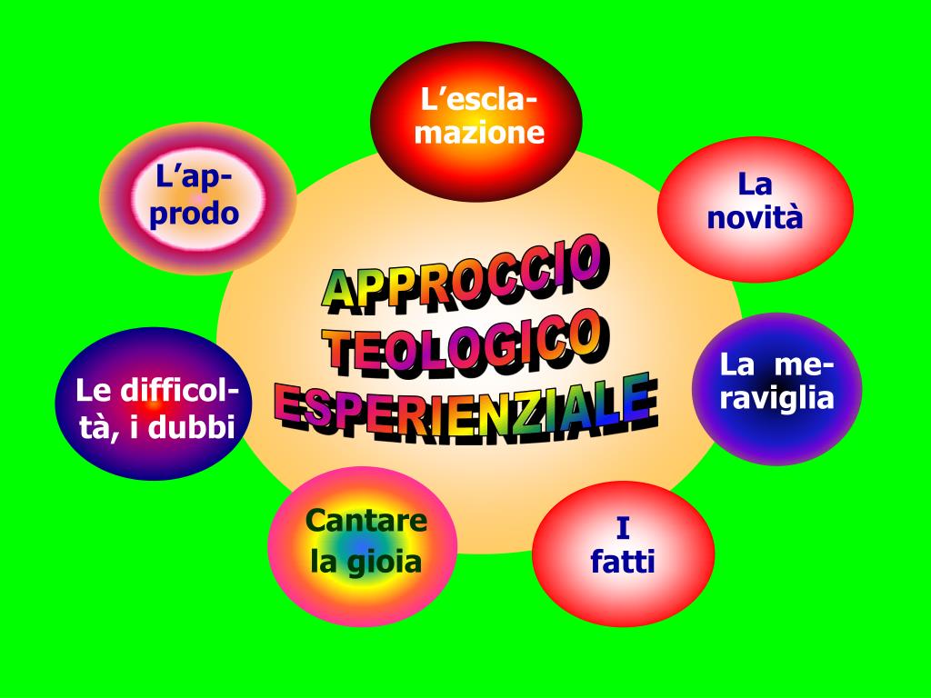 La me-raviglia Lanovità Ifatti L’ap-prodo Cantarela gioia Le difficol-tà, i dubbi L’escla-mazione APPROCCIO TEOLOGICO ESPERIENZIALE