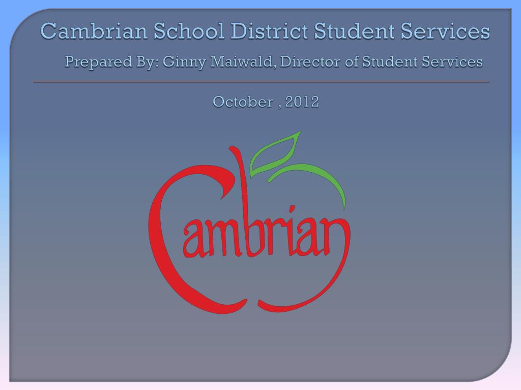 Cambrian School District Student ServicesPrepared By: Ginny Maiwald, Director of Student ServicesOctober , 2012