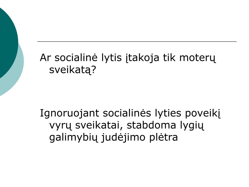 Ar socialinė lytis įtakoja tik moterų sveikatą? Ignoruojant socialinės lyties poveikį vyrų sveikatai, stabdoma lygių galimybių judėjimo plėtra