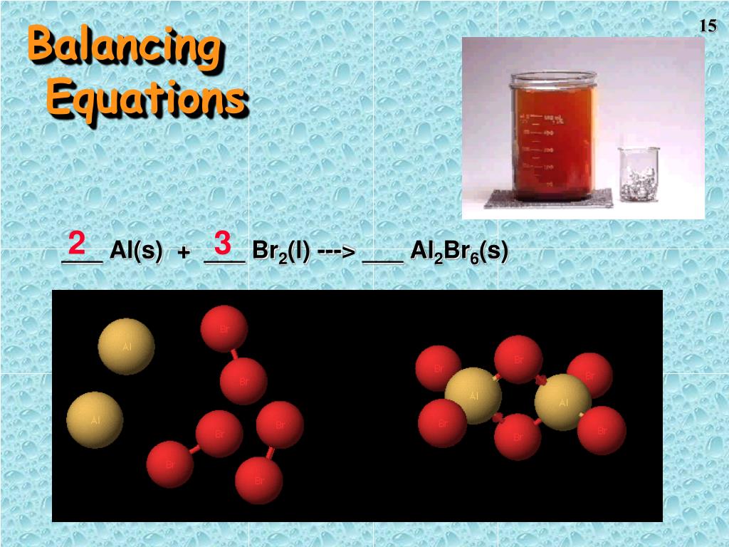 Balancing Equations ___ Al(s) + ___ Br2(l) ---> ___ Al2Br6(s) 2 3