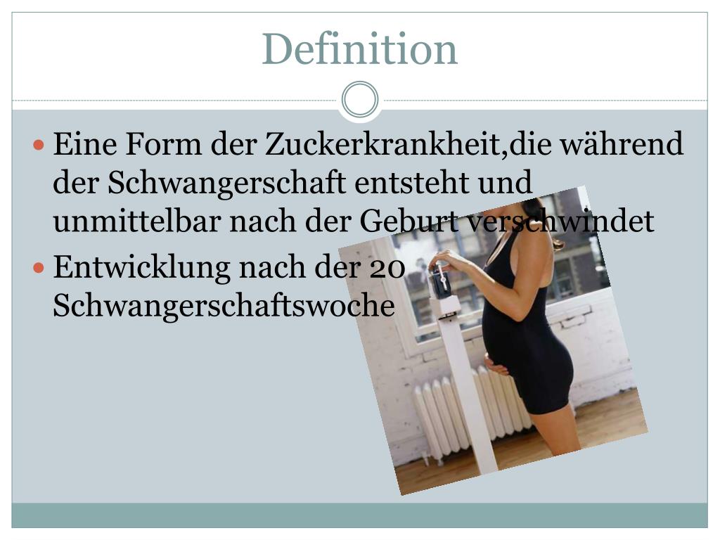 Schwangerschaftsdiabetes. Gestationdiabetes,Diabetes typ 4. Definition. Eine Form der Zuckerkrankheit,die während der Schwangerschaft entsteht und unmittelbar nach der Geburt verschwindet Entwicklung nach der 20 Schwangerschaftswoche. Häufigkeit und Risikofaktoren.