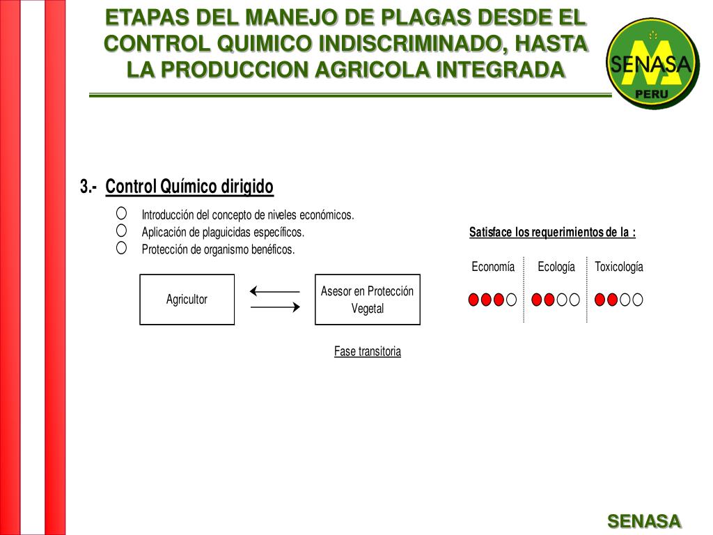 ETAPAS DEL MANEJO DE PLAGAS DESDE EL CONTROL QUIMICO INDISCRIMINADO, HASTA LA PRODUCCION AGRICOLA INTEGRADA SENASA