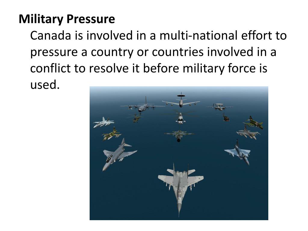 Military PressureCanada is involved in a multi-national effort to pressure a country or countries involved in a conflict to resolve it before military force is used.