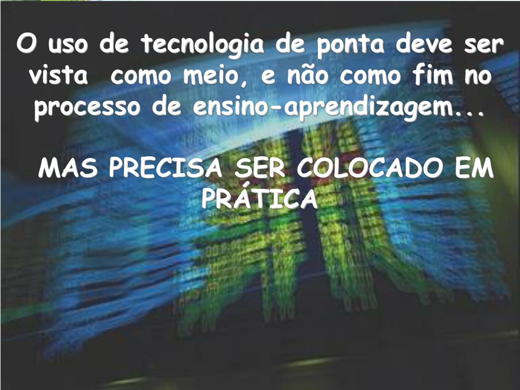O uso de tecnologia de ponta deve ser vista como meio, e não como fim no processo de ensino-aprendizagem... MAS PRECISA SER COLOCADO EM PRÁTICA