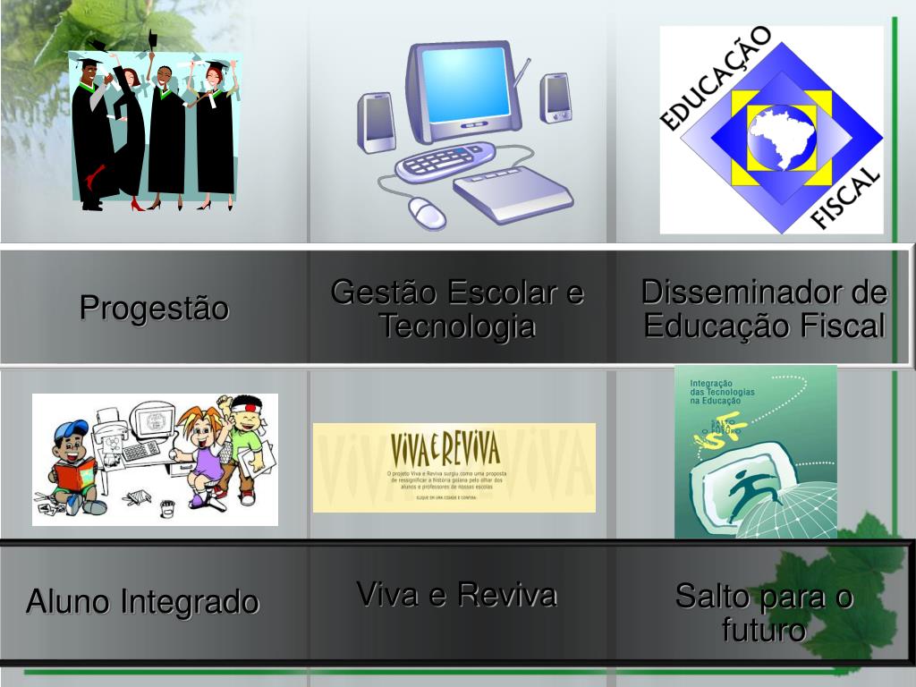 Disseminador de Educação Fiscal Gestão Escolar e Tecnologia Progestão Viva e Reviva Salto para o futuro Aluno Integrado