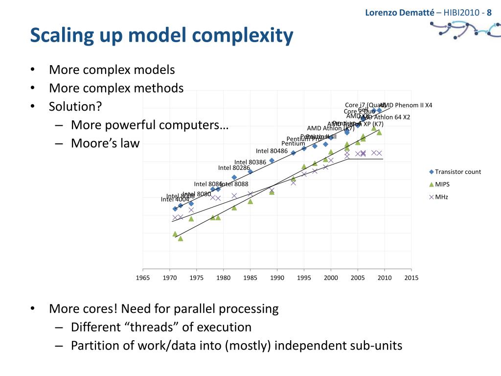 Scaling up model complexity • More complex models • More complex methods • Solution? • More powerful computers… • Moore’s law • More cores! Need for parallel processing • Different “threads” of execution • Partition of work/data into (mostly) independent sub-units