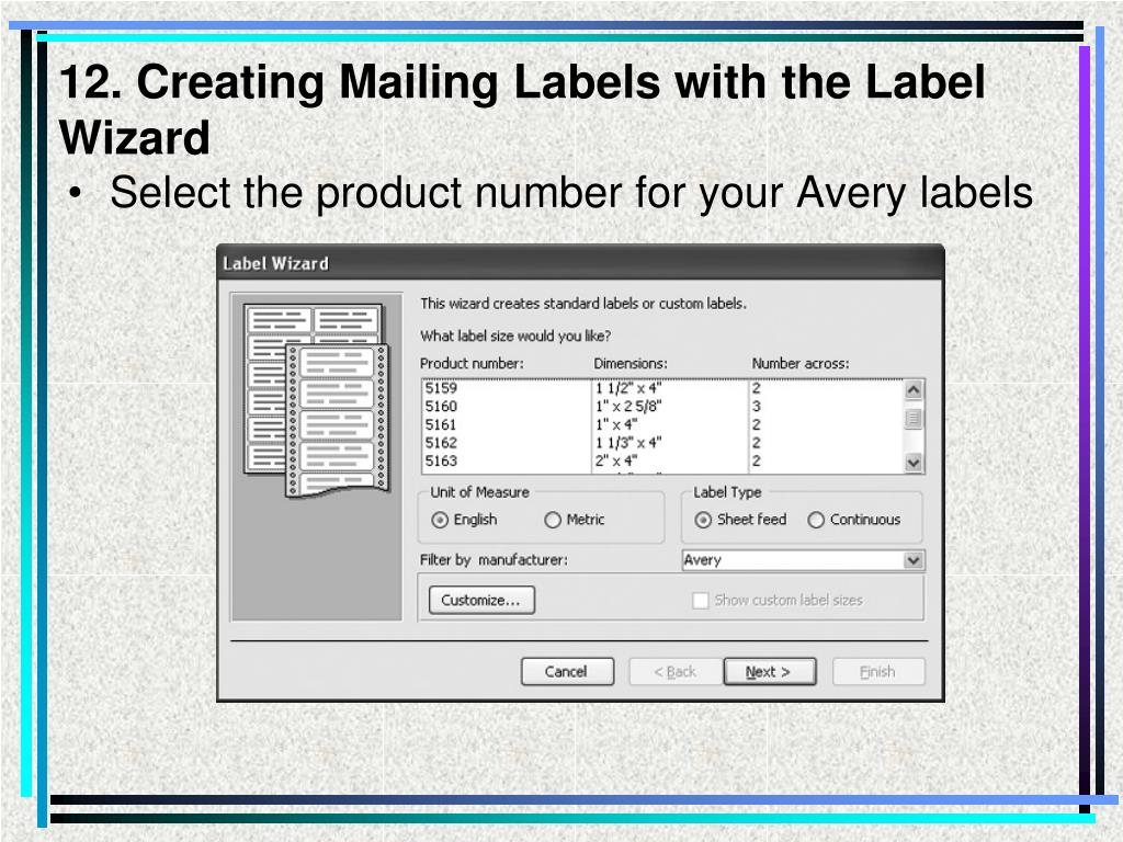 12. Creating Mailing Labels with the Label Wizard Select the product number for your Avery labels