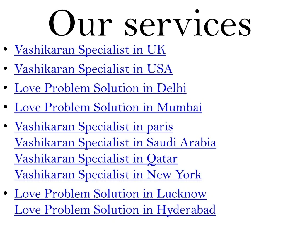 5. Our services • Vashikaran Specialist in UK • Vashikaran Specialist in USA • Love Problem Solution in Delhi • Love Problem Solution in Mumbai • Vashikaran Specialist in parisVashikaran Specialist in Saudi ArabiaVashikaran Specialist in QatarVashikaran Specialist in New York • Love Problem Solution in LucknowLove Problem Solution in Hyderabad