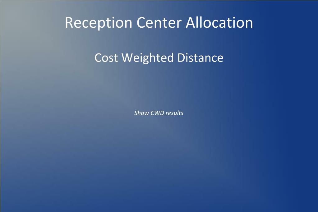 Reception Center Allocation • Cost Weighted Distance • Show CWD results