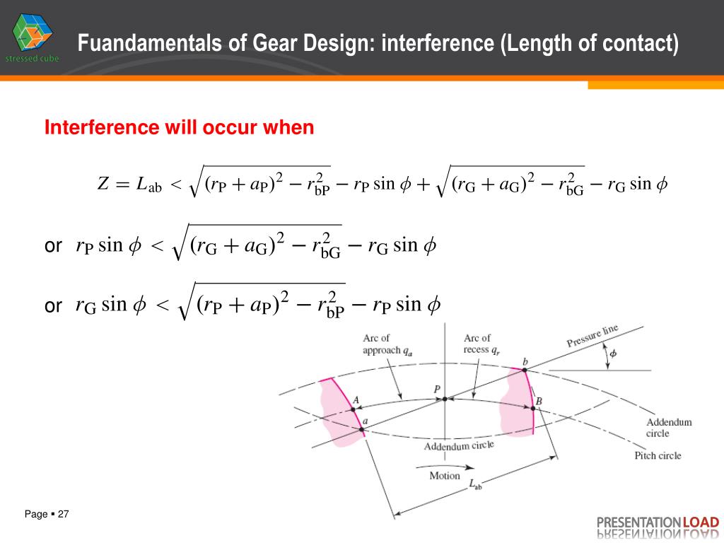 Fuandamentals of Gear Design: interference (Length of contact) Interference will occur when or or