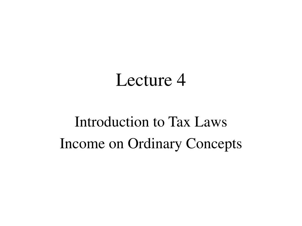 Lecture 4 Introduction to Tax Laws Income on Ordinary Concepts