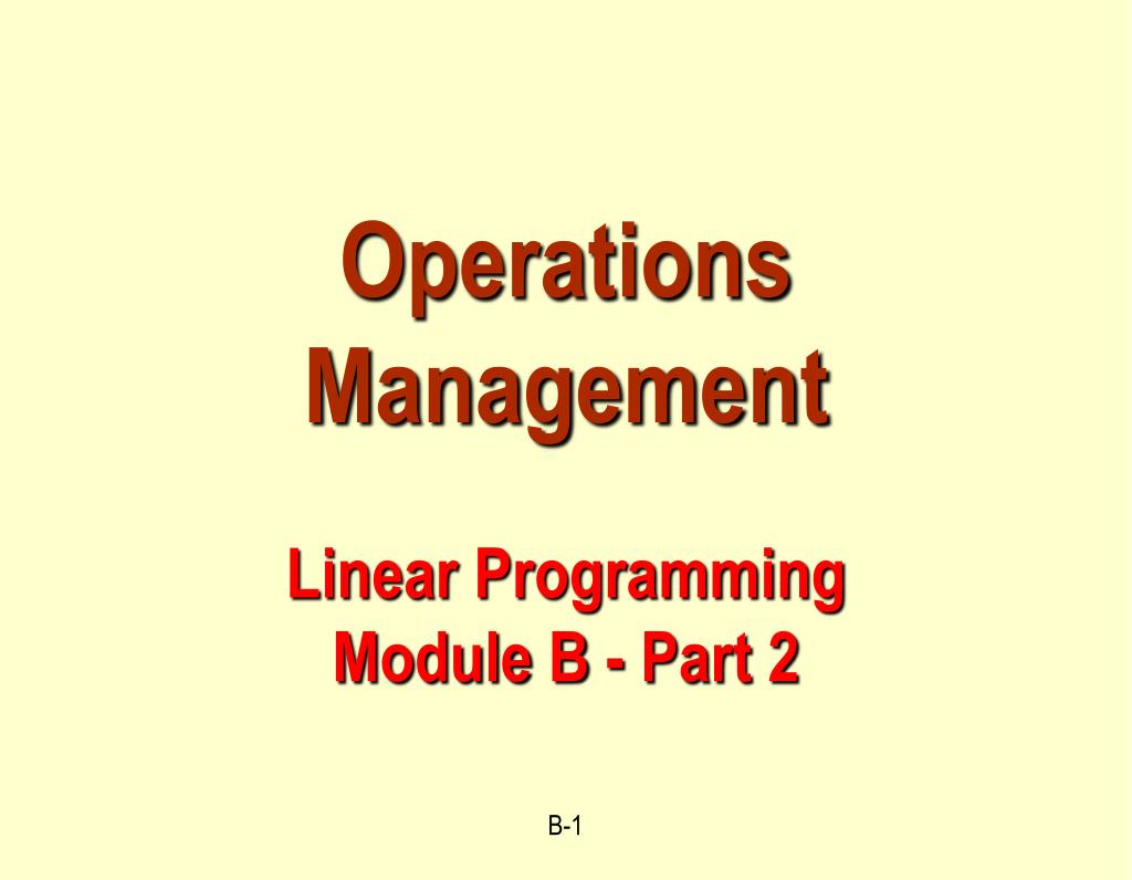 Operations Management Linear Programming Module B - Part 2. Problem B.23.