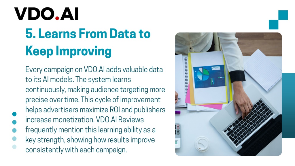 5. Learns From Data to Keep Improving Every campaign on VDO.AI adds valuable data to its AI models. The system learns continuously, making audience targeting more precise over time. This cycle of improvement helps advertisers maximize ROI and publishers increase monetization. VDO.AI Reviews frequently mention this learning ability as a key strength, showing how results improve consistently with each campaign.