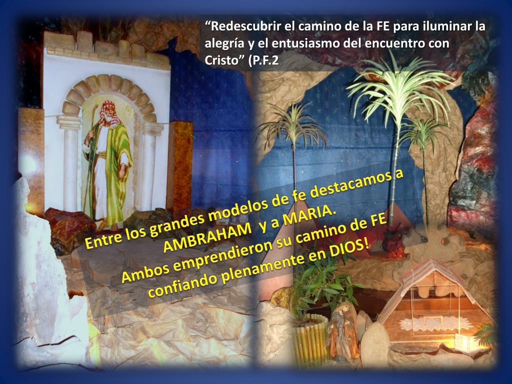 “Redescubrir el camino de la FE para iluminar la alegría y el entusiasmo del encuentro con Cristo” (P.F.2 Entre los grandes modelos de fe destacamos a AMBRAHAM y a MARIA. Ambos emprendieron su camino de FE confiando plenamente en DIOS!