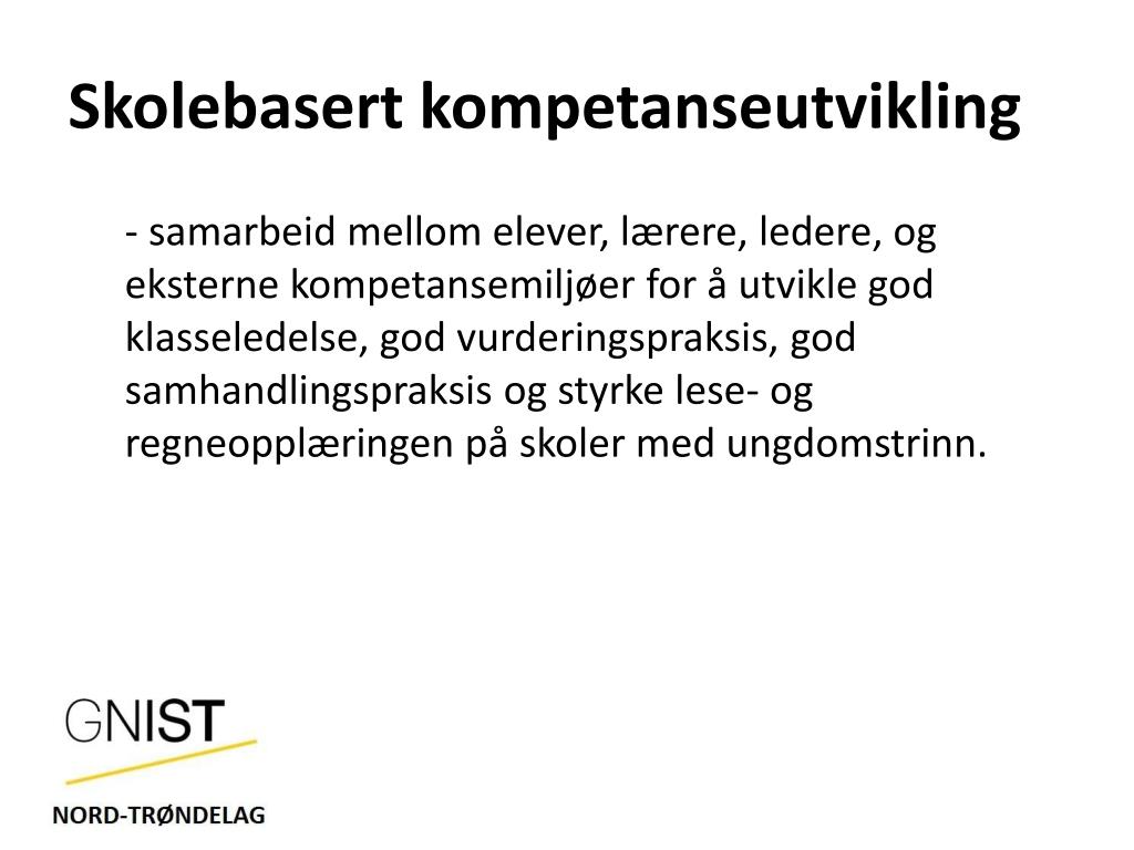 På inn og utpust… • Kort presentasjon av GNIST Nord-Trøndelag • Regionalt partnerskap • Prosjektleder • Organisering, oppdrag og oppgaver • Strategi for ungdomstrinnet • Skolebasert kompetanseutvikling • Fra pilot til fullskala • Nettressurser • GNIST - NyGIV • Rekruttere og beholde • Omdømmebygging