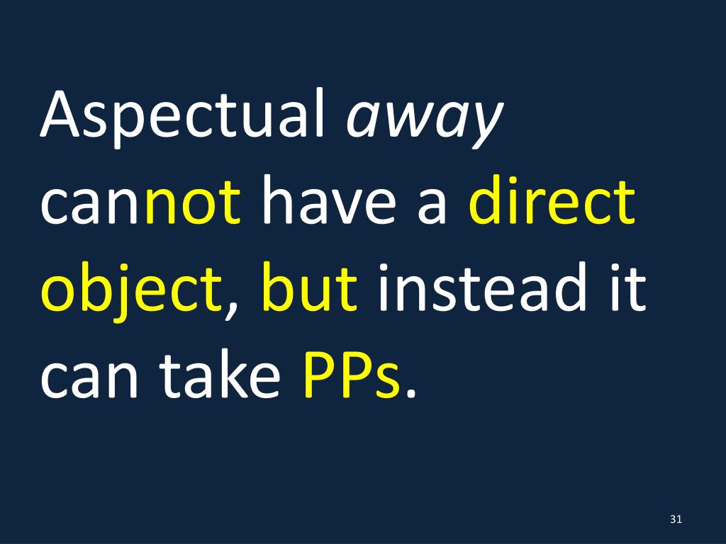 Aspectual away cannot have a direct object, but instead it can take PPs.