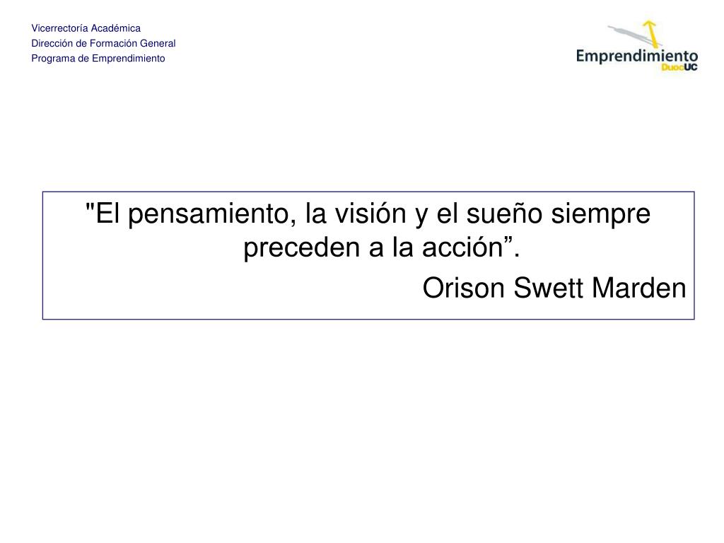 "El pensamiento, la visión y el sueño siempre preceden a la acción”. Orison Swett Marden