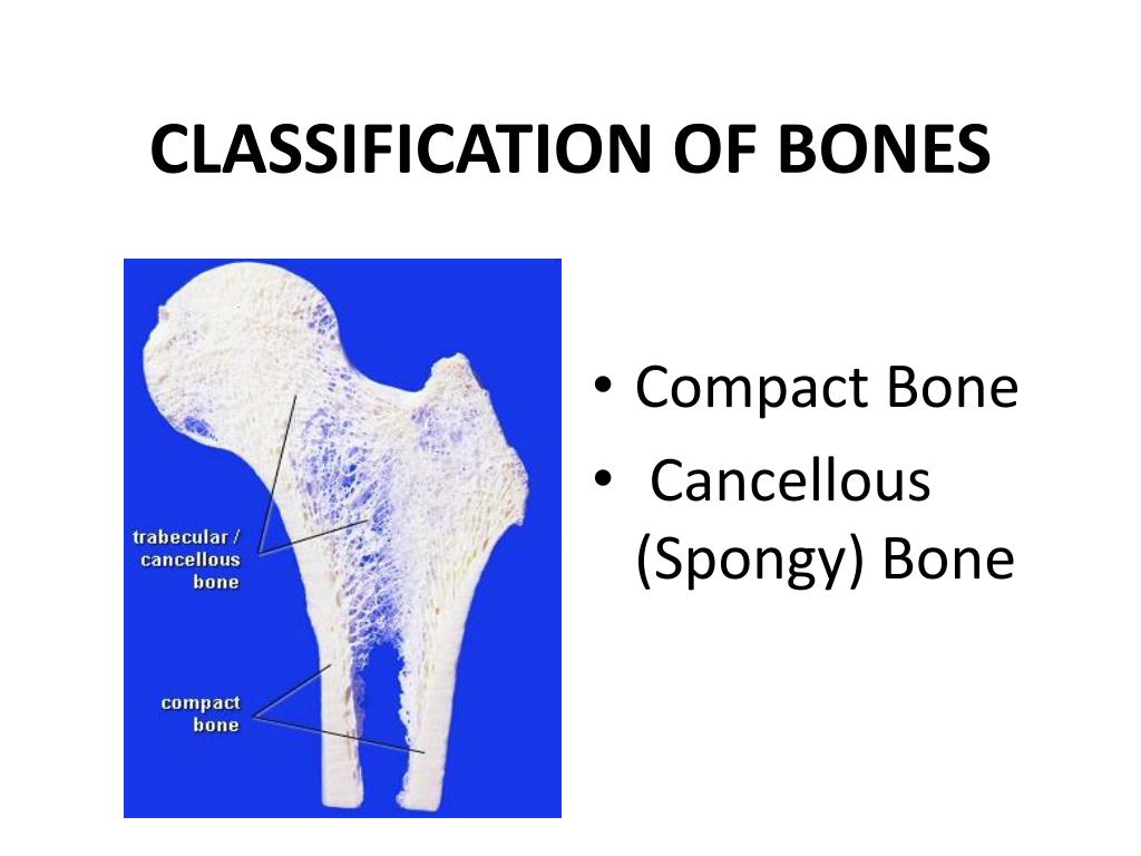 CLASSIFICATION OF BONES • Compact Bone • Cancellous (Spongy) Bone
