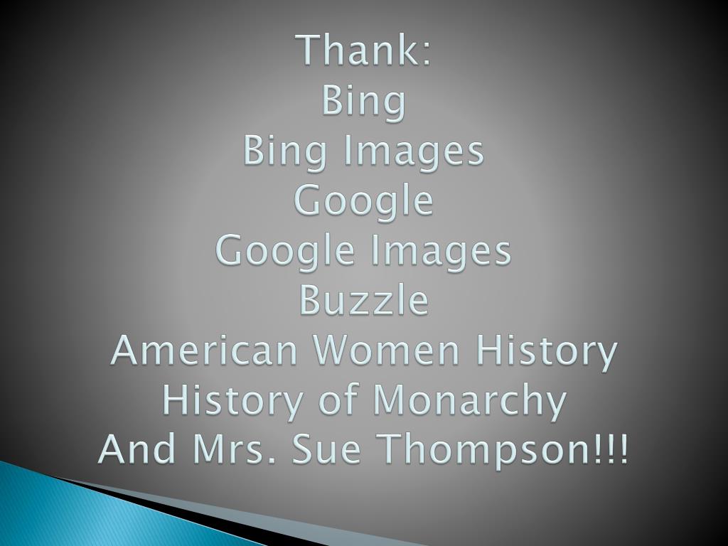 Thank:BingBing ImagesGoogleGoogle ImagesBuzzleAmerican Women HistoryHistory of MonarchyAnd Mrs. Sue Thompson!!!