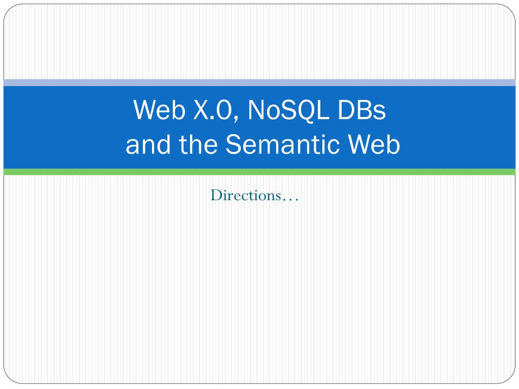 Web X. 0, NoSQL DBs and the Semantic Web. Directions…. Quick review: Web development frameworks. Web 2.0/3.0 is about making websites faster, smarter, more media rich and more intuitive