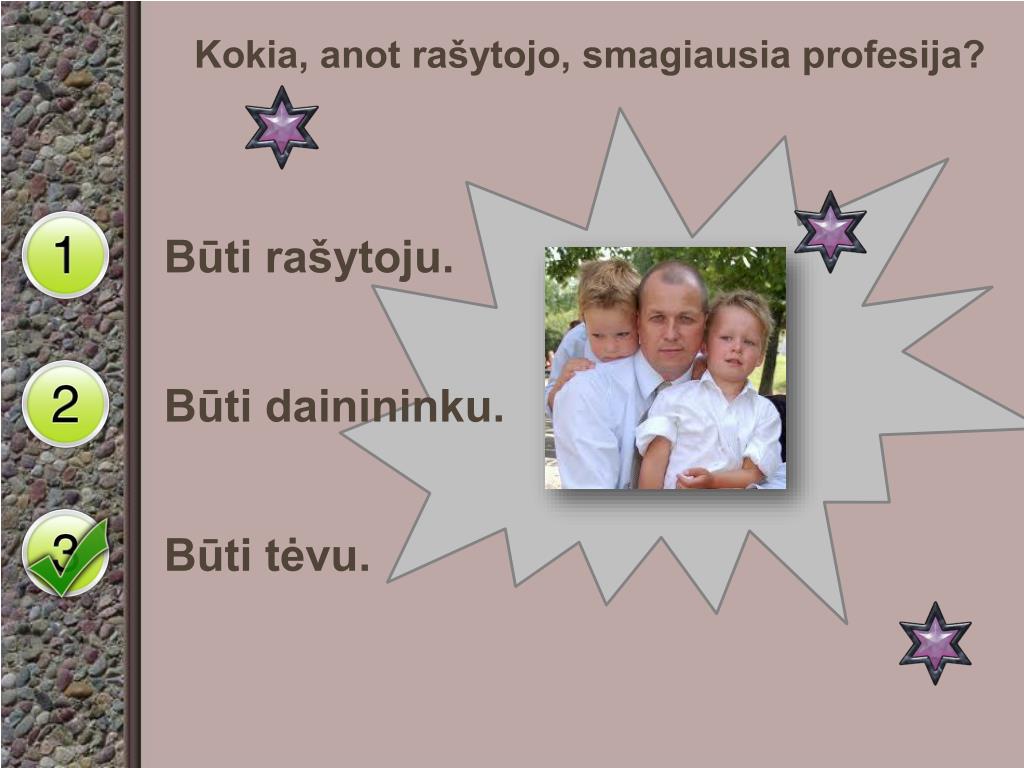 Kokia, anot rašytojo, smagiausia profesija? Būti rašytoju. Būti dainininku. Būti tėvu.