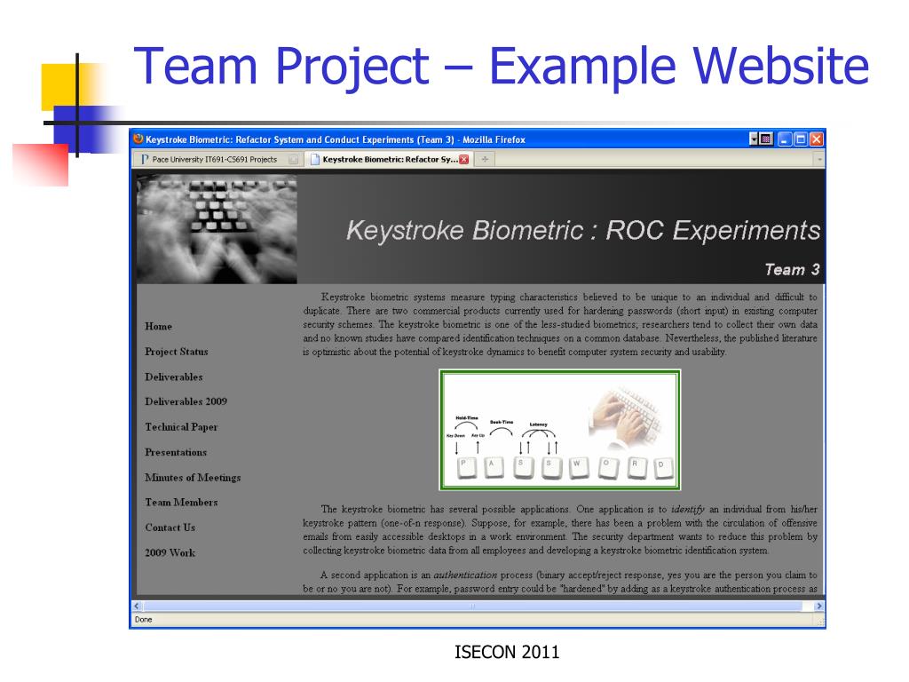 Team Projects – Examples Course website “Projects” page Spring 2011 ISECON 2011