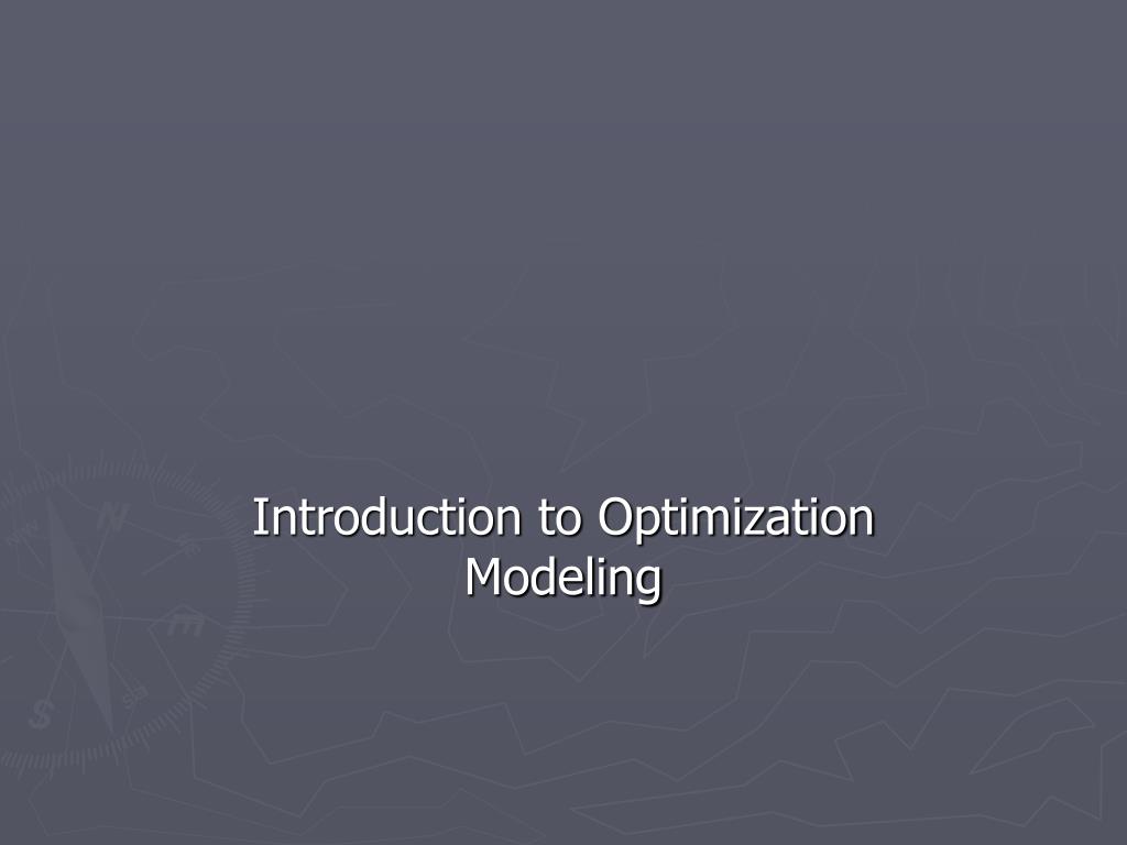 3.2 Introduction to Optimization • Common elements of all optimization problems • Decision Variables - the variables whose values the decision maker is allowed to choose. • Objective Function - value that is to be optimized – maximized or minimized • Constraints that must be satisfied • Excel terminology for optimization • Decision variables = changing cells • Objective = target cell • Constraints impose restrictions on the values in the changing cells.