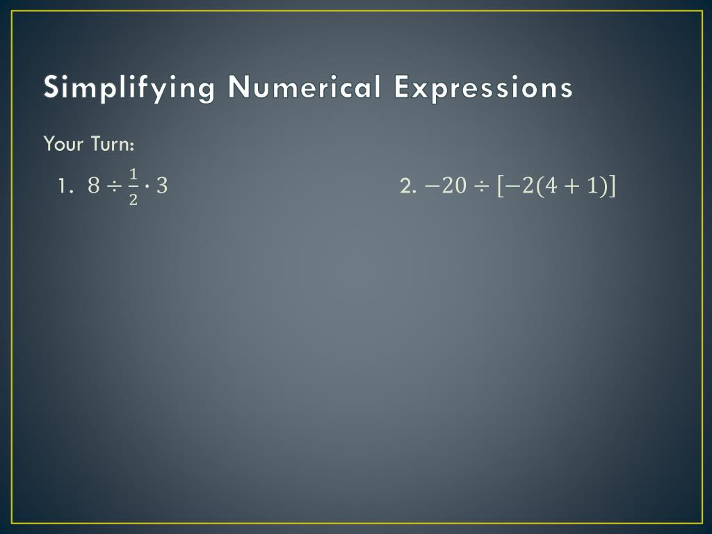 Simplifying Numerical Expressions Your Turn: 1. 2.
