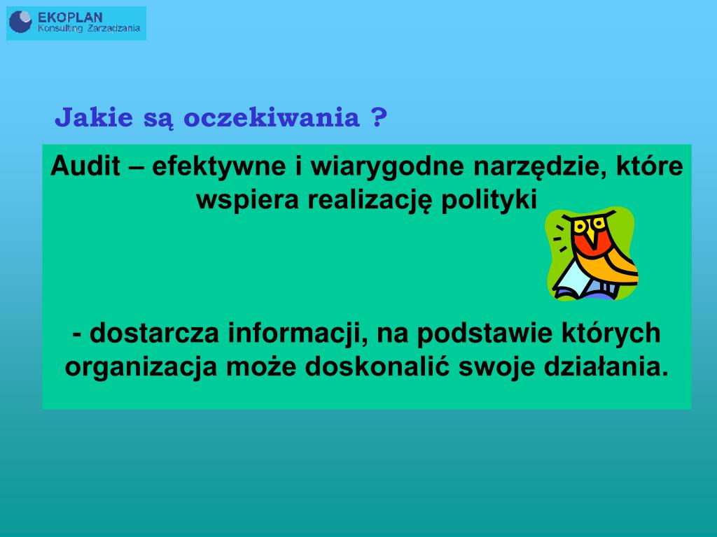 Jakie są oczekiwania ? Audit – efektywne i wiarygodne narzędzie, które wspiera realizację polityki - dostarcza informacji, na podstawie których organizacja może doskonalić swoje działania.