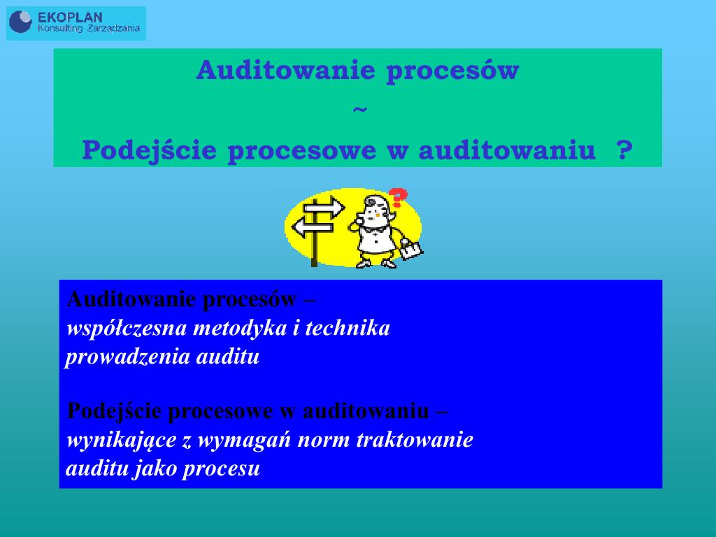 Auditowanie procesów ~ Podejście procesowe w auditowaniu ? Auditowanie procesów – współczesna metodyka i technika prowadzenia auditu Podejście procesowe w auditowaniu – wynikające z wymagań norm traktowanie auditu jako procesu