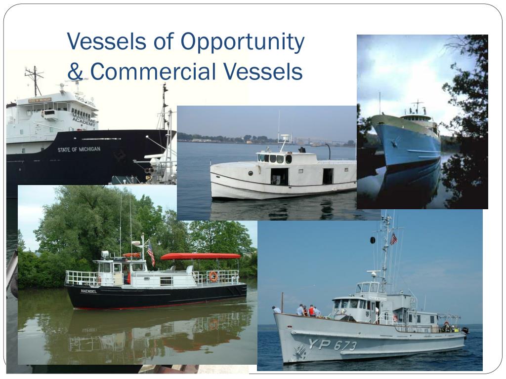 Multi-Mission Capabilities Support Traditional Sampling – Provide for Emerging Technologies Automated Vessel Observations Support Great Lakes Observing System Test bed for new sensors