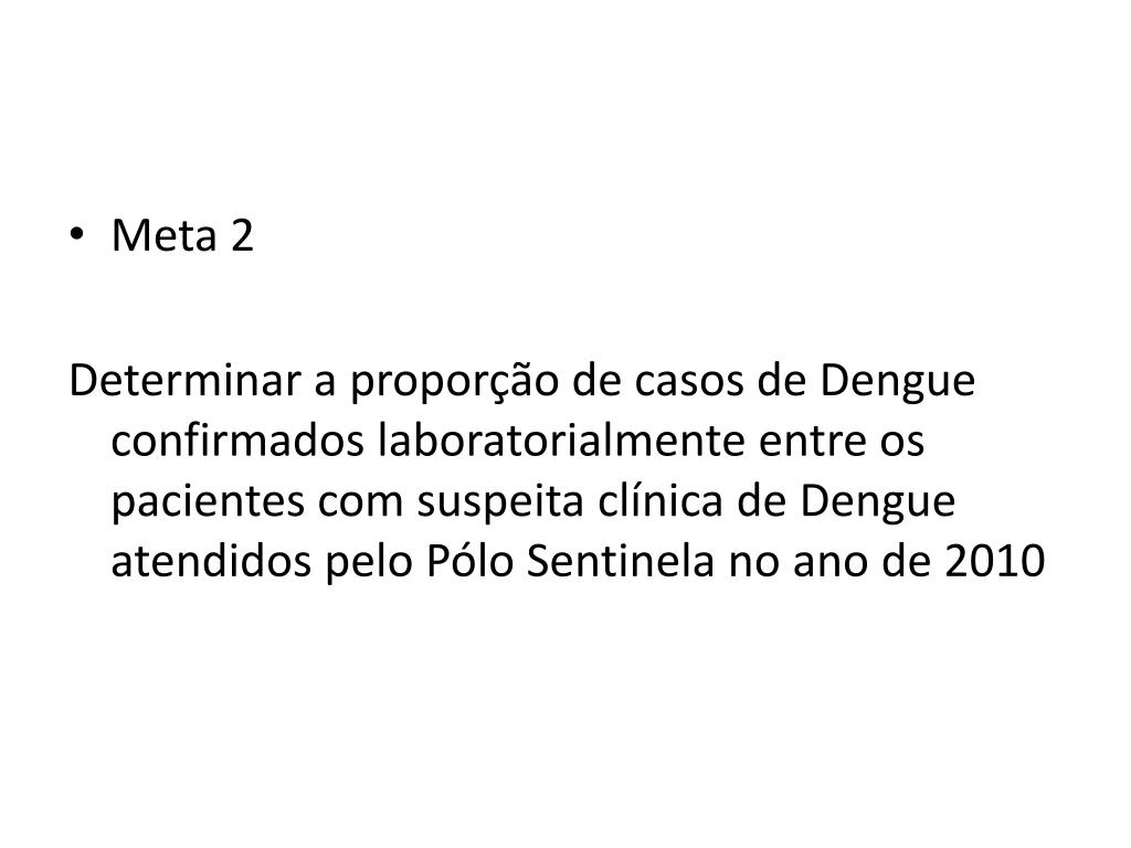 Meta 2 Determinar a proporção de casos de Dengue confirmados laboratorialmente entre os pacientes com suspeita clínica de Dengue atendidos pelo Pólo Sentinela no ano de 2010