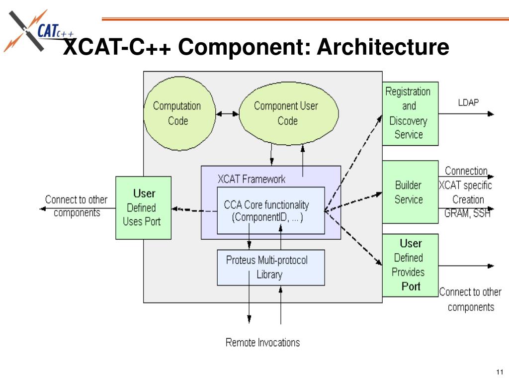 XCAT • XCAT-Java (Indiana University) • Interoperable with emerging standards in Grid Web services • Uses XSOAP communication library • Implementation of the SOAP (XML + HTTP) specification • XCAT-C++ (SUNY Binghamton) • Support for most of CCA API • Uses Proteus multi-protocol communication library • tested with the binary protocol of Proteus • XSOAP-C++ module within Proteus is currently being tested