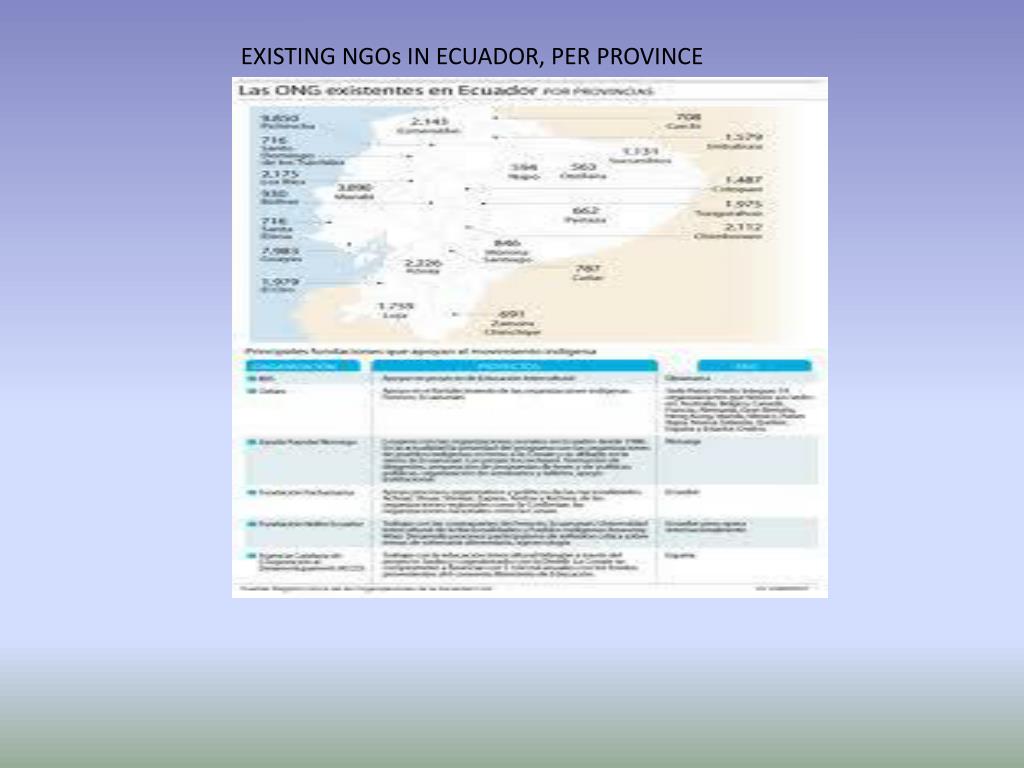 TREATMENT CAPACITY In 1998, we have found that 68 NGOs were carrying out volunteer prison work, from which 2 only were providing services to victims of torture in the city of Quito.