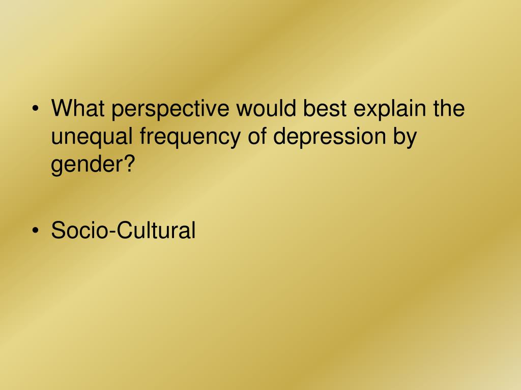 What perspective would best explain the unequal frequency of depression by gender? • Socio-Cultural