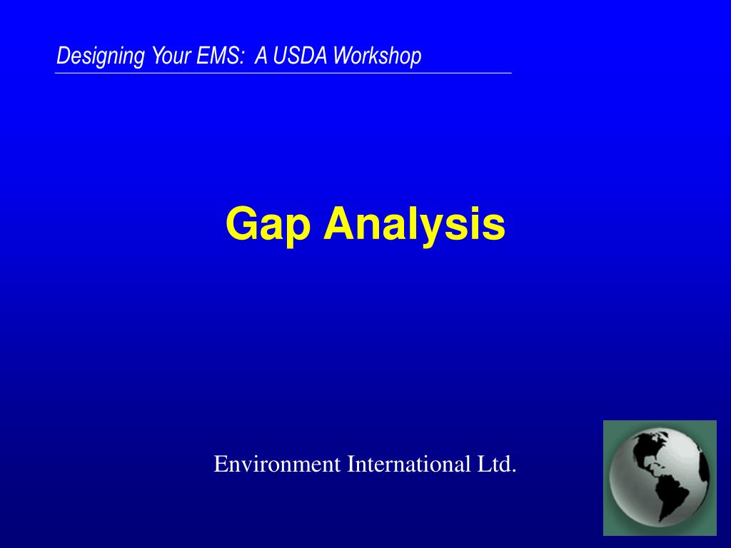 Definition A gap analysis is a process used to assess the current state of your facility’s EMS. Other similar processes are “environmental management system reviews (EMRs).”