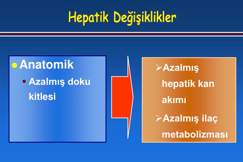 Anatomik • Azalmış doku kitlesi • Azalmış hepatik kan akımı • Azalmış ilaç metabolizması Hepatik Değişiklikler