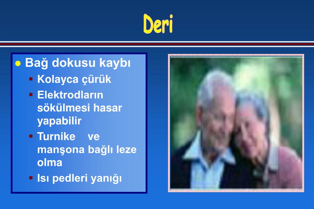 Bağ dokusu kaybı Kolayca çürük Elektrodların sökülmesi hasar yapabilir Turnike ve manşona bağlı leze olma Isı pedleri yanığı Deri